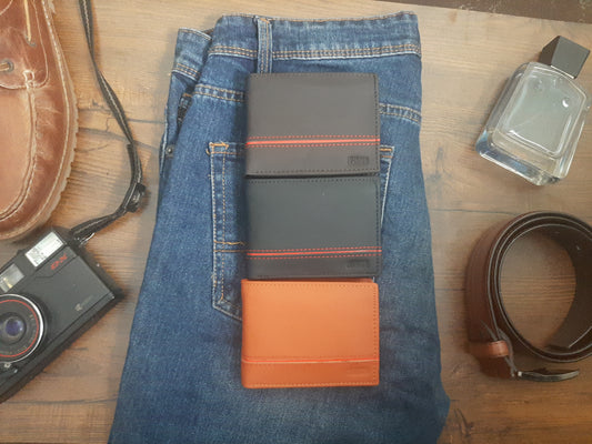 Genuine Leather Wallet with Red Strip
