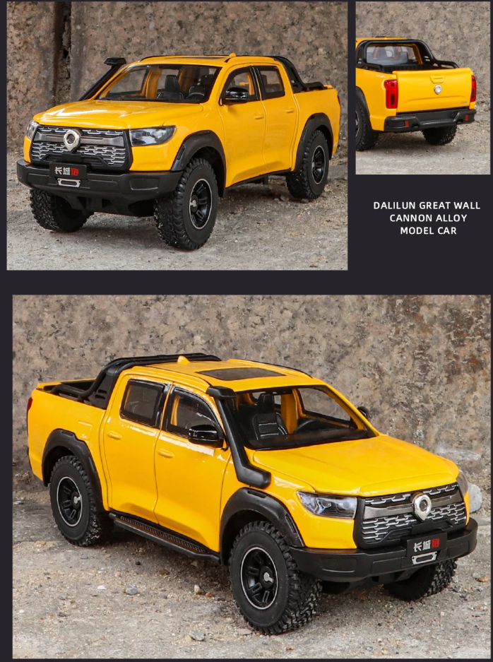 Bring the power and prestige of the HAVAL Canon into your hands with this highly detailed 1:24 scale die-cast pickup truck model. Whether you're a collector, a car enthusiast, or looking for the perfect gift, this model delivers unmatched realism, durability, and interactive features.