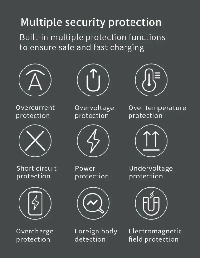 Automatic Metal Detection β Smart recognition prevents charging when coins, keys, or metal objects are detected.